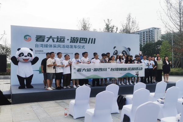 8月9日,由四川省文化和旅游厅和四川省人民政府台湾事务办公室联合举办的“看大运·游四川”台湾媒体采风活动在成都蜀道通衢园正式启动。20余名来川报道大运会的台湾媒体记者和台湾青年自媒体人将开启为期2天的安逸四川之旅,体验风情浓郁的绵竹年画,探寻神秘古老的三星堆,拜访屹立千年的乐山大佛,观摩文脉悠长的三苏祠,感受以宽窄巷子为代表的成都市井生活。