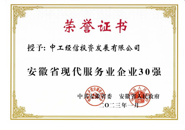 荣膺安徽省现代服务业企业30强并受到省委、省政府表扬,中工经信倍感荣誉弥足珍贵,使命光荣艰巨。2023年,中工经信将再接再厉,充分发挥安徽省现代服务业企业30强榜样示范作用,释放强大动能。