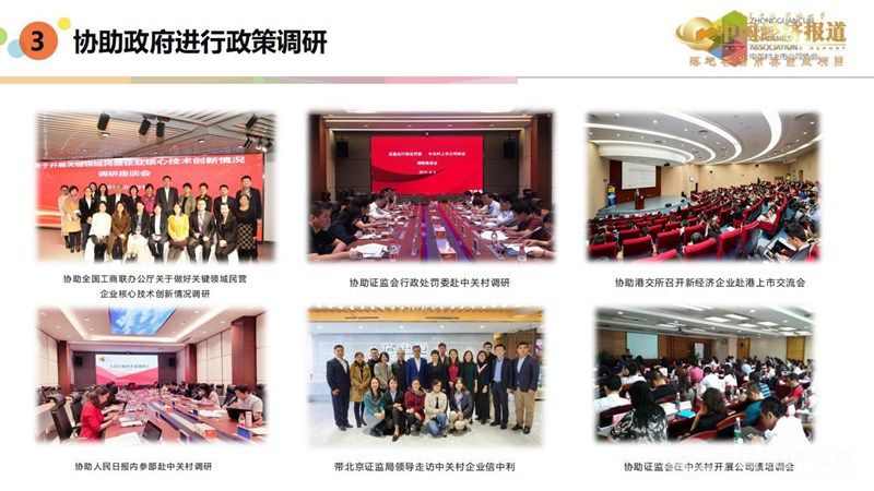协会通过分析上市公司成长数据、总结上市公司发展规律,发布中关村上市公司年度竞争力报告,协助政府有关部门、会员单位以及投资人完成相关专题研究,帮助会员企业制定发展策略。