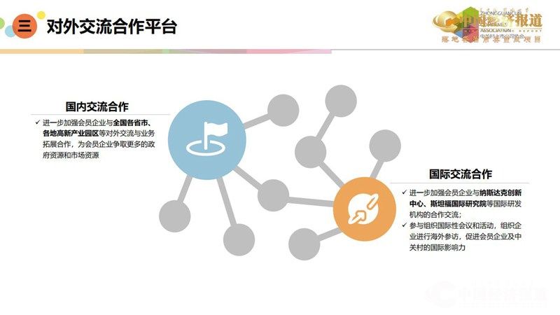 举办国际性会议和活动,组织企业进行海外路演和参观访问,促进会员企业乃至整个中关村的国际化水平,提升区域国际影响力。