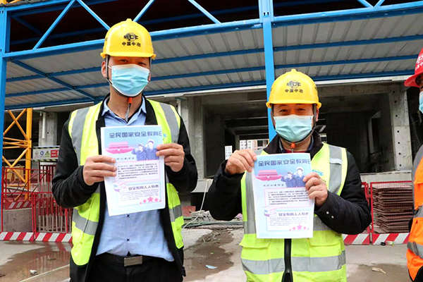 活动中,项目部党员、志愿者走进施工一线,为建筑工人发放宣传彩页,详细讲解国家安全法、安全生产等国家安全相关法律,大力宣传安全生产知识,引导大家主动投入安全生产,全方位落实安全生产责任,将隐患查出来,安全防线“筑”起来。