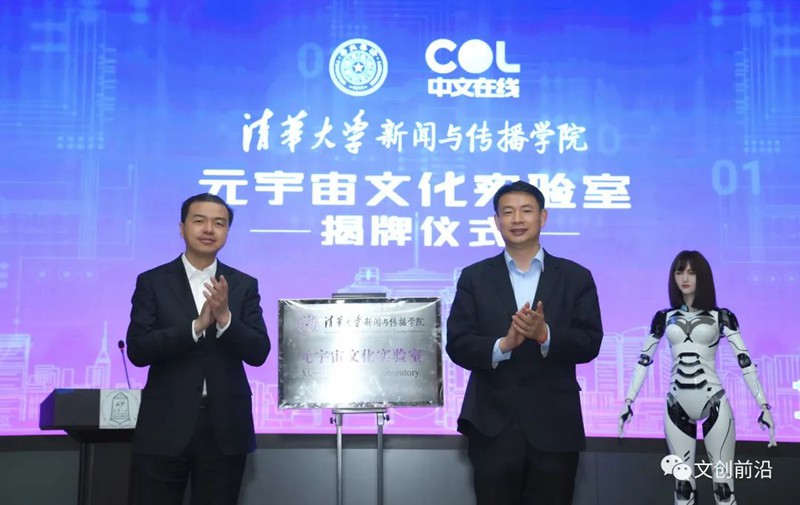 在清华大学新闻与传播学院迎来建院二十周年之际,4月16日,“清华大学新闻与传播学院元宇宙文化实验室”正式成立。清华大学党委副书记向波涛,清华大学新闻与传播学院党委书记胡钰,清华大学校友、中文在线集团董事长兼总裁童之磊等出席成立揭牌仪式,揭牌仪式采用机器人和虚拟主播主持的方式,增加了现场“元宇宙属性”。