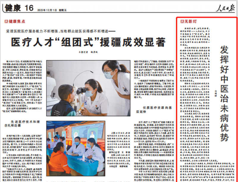 人民日报:发挥好中医治未病优势