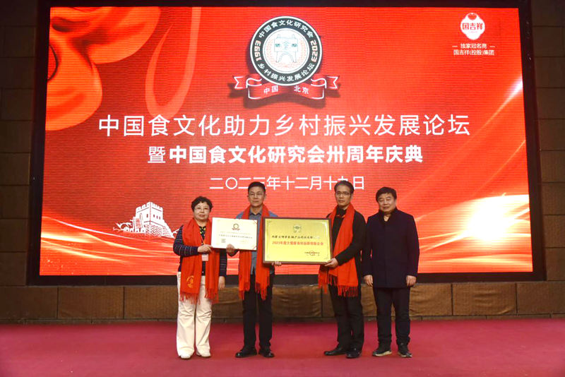 图为:中国食文化研究会为首批“蒙货出原”优秀企业颁奖授牌
