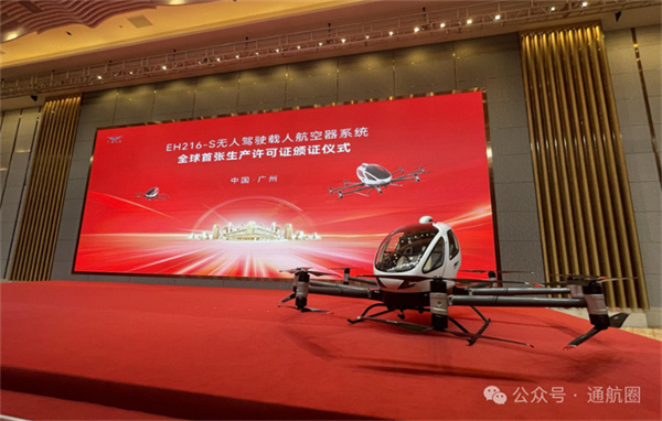 低空经济之首证颁发!全球首张载人eVTOL的生产许可证在中国颁出!亿航智能EH216-S无人驾驶航空器系统喜获PC