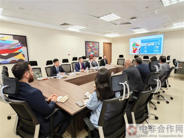 中经总网讯:北京时间4月23日上午,中非工业合作发展论坛秘书长程志刚率工商企业代表团访问埃及,首先与埃及苏伊士运河经济区管理局副主席穆罕默德.阿卜杜勒.加瓦德会谈。副主席详细介绍了苏伊士运河经济区的发展情况,强调埃及作为国际投资中心,拥有进入非洲、中东和北非地区的独特通道和出口平台,具有成为全球物流中心的巨大潜力。