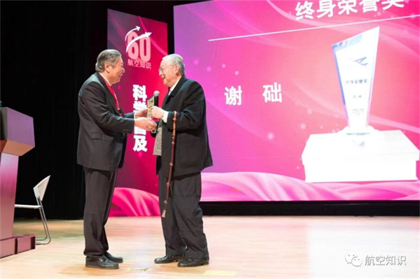 (2018年,《航空知识》创刊60年时,中国航空学会授予谢础先生“终身荣誉奖”。)