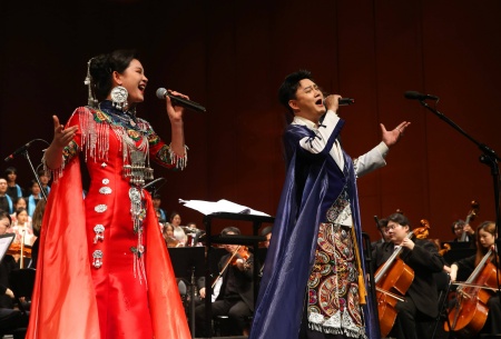 晚上8时,《春节序曲》拉开交响音乐会的序幕,热情洋溢的旋律营造出欢乐的节日氛围。音乐会精选9首中外经典音乐作品进行演出。其中,根据我国同名民族芭蕾舞剧改编而成的《红色娘子军》交响组曲,颂扬了娘子军巾帼不让须眉的革命精神;男女二重唱《情深意长》以抒情的旋律、深情的歌词,表达了民族情谊深远流长;《灯火里的中国》《我爱你中华》《沁园春·雪》等独唱曲目,旋律激昂豪放,彰显祖国山河壮丽、繁荣昌盛;《贝多芬钢琴小提琴大提琴三重协奏曲第一乐章》由三种乐器共同演奏,相互倾诉、彼此依托;作为维也纳新年音乐会保留曲目的《蓝色多瑙河圆舞曲》,格调华丽、高雅;结束曲目《拉德茨基进行曲》,用铿锵有力的节奏给人以美的享受。