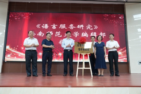 随后,杨兹举等与会领导一同为《语言服务研究》海南师范大学编辑部揭牌。