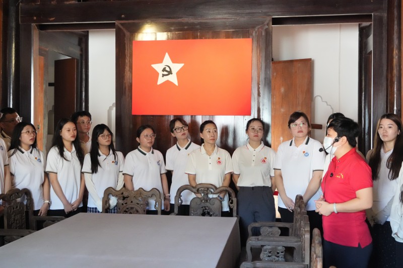 启动仪式上,全体师生齐唱国歌。随后,在辅导员和研究生代表的带领下,分别重温入党、入团誓词。铮铮誓言在革命旧址回荡,展现了新时代青年传承红色基因的坚定信念。