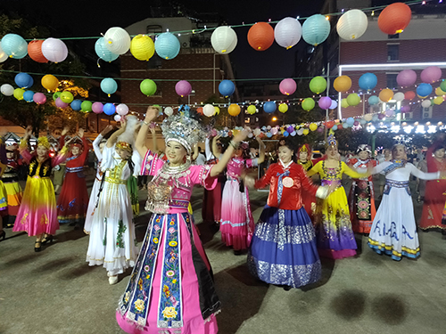 月光皎洁明亮,身穿民族服饰的少数民族代表为现场居民展示了精彩的舞蹈表演,带来了一场民族融合的艺术盛会,令人们陶醉愉悦。