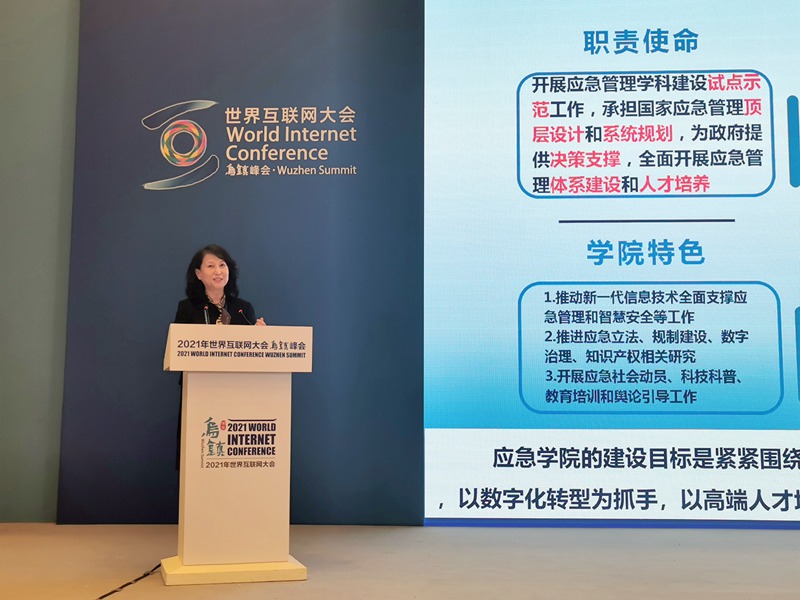 图:中国科学院大学应急管理科学与工程学院院长李颖出席“2021世界互联网大会乌镇峰会”推动数字经济发展与合作研讨会发言