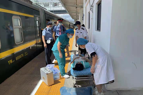 接到报告后,苏车长立即和列车红十字救护员赶往现场,同时通过列车广播寻找医护人员帮助。经现场了解,该孕妇怀孕两个多月,腹痛并伴有出血症状,孕妇极度紧张害怕。
