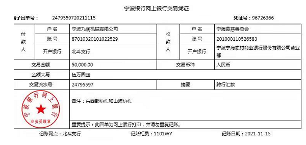 中国经济报道11月18日讯 11月15日下午,宁海县慈善总会收到了来自宁波琦丰汽车部件有限公司与宁波九润机械有限公司向四川省普格县捐赠的10万元捐款。