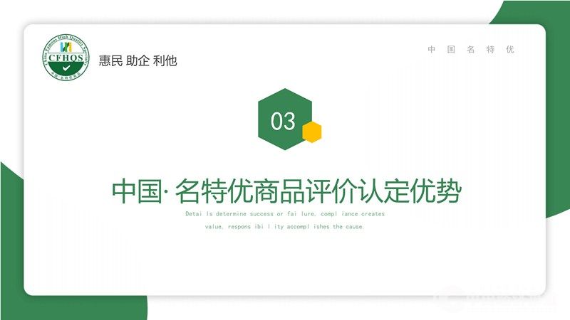 中国名特优商品认定独具行业权威公信力,“名”指知名度高的商品;“特”指具有地方特色的商品;“优”指品质优良的商品。经过权威评定的商品上印有中国名特优标识,使得消费者对商品的品质有了更新的认知。