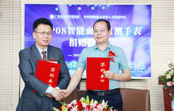中国经济报道讯 5月24日,广昀星健康管理集团携手中国老龄协会老年人才信息中心、中国老龄事业发展基金会老年维权基金管理委员会向中老年人捐赠GHP08智能血压监测手表签约仪式在深圳圆满举行。中国老龄协会老年人才信息中心调研员温华均先生及团队一行六人,广昀星健康管理集团董事、深圳市荣恒源实业有限公司董事长徐运林先生,广昀星健康管理集团董事长、美国健康协会副会长、加州大学公共保健学院研究员王耀民先生,国家生物医学和大健康产业外籍科学顾问、香港和澳门特首首席生物医学科学顾问、广昀星健康管理集团首席科学家、前美国FDA官员姚毅教授,广昀星生物科技(深圳)有限公司董事长陈媛媛女士,广昀星一道基因公司董事长欧阳秦先生等人列席参加。