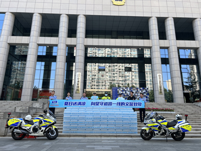 康师傅(西安)饮品有限公司王育红部长表示,一直以来,不管刮风下雨,烈日寒冬,西安交警始终坚守路面一线,日复一日、年复一年的恪尽职守,维护道路交通的安全畅通,为群众创造良好的道路交通环境,希望这点小小的关心能让交警同志在三伏天感受到一丝清凉。