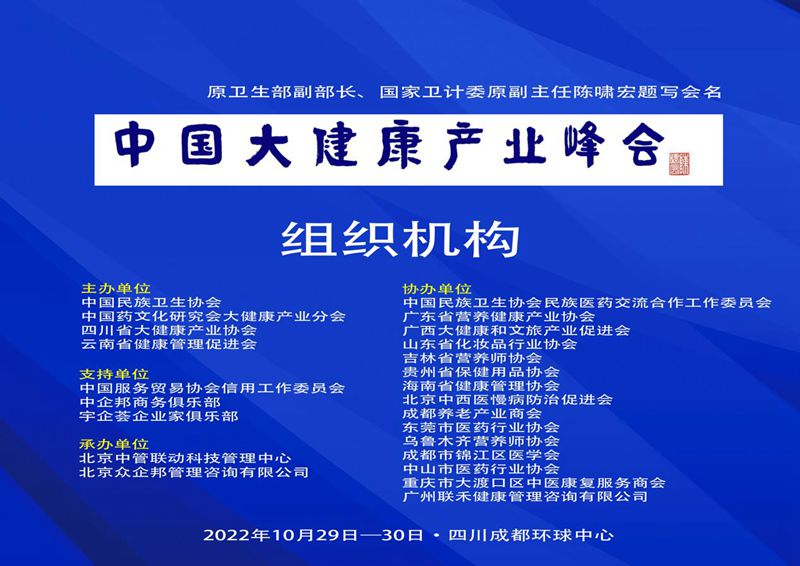 中经网•中经在线讯:近日,中国大健康产业峰会组委会发布消息,第二届中国大健康产业峰会暨“2022健康产业博览会”将于11月26-27日在成都环球中心举办。