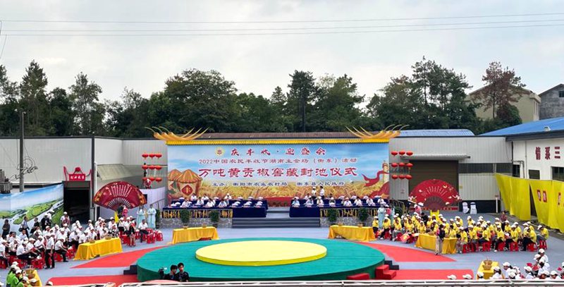 中经网·中经在线讯:“集万物之精华,汇灵气于窖池,乃藏万吨,香溢千嶂。”9月23日下午,万吨黄贡椒窖藏封池仪式在湖南省衡东县吴集镇举行,拉开2022中国农民丰收节湖南主会场(衡东)活动序幕。