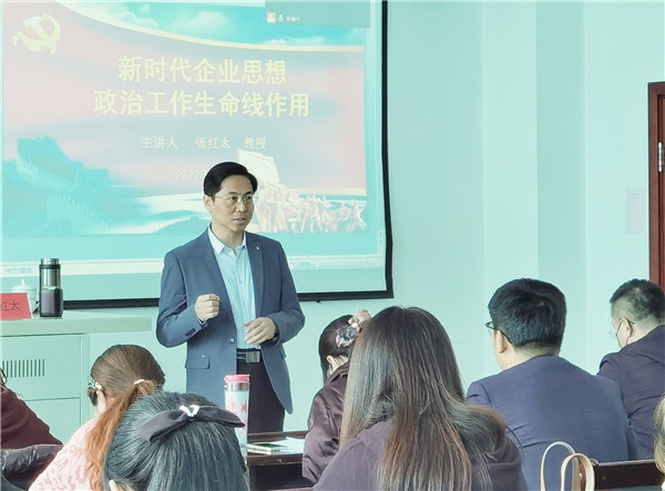 张红太教授结合党的二十大报告中关于加强企业思想文化建设的主要精神,针对当前企业思想政治工作发展现状,从思想政治工作生命线地位和作用、做好企业思想政治工作是时代要求、新时代思想政治工作者应把握的要点、全媒体时代媒介素养与企业思想政治工作等四个方面进行了专题讲座。
