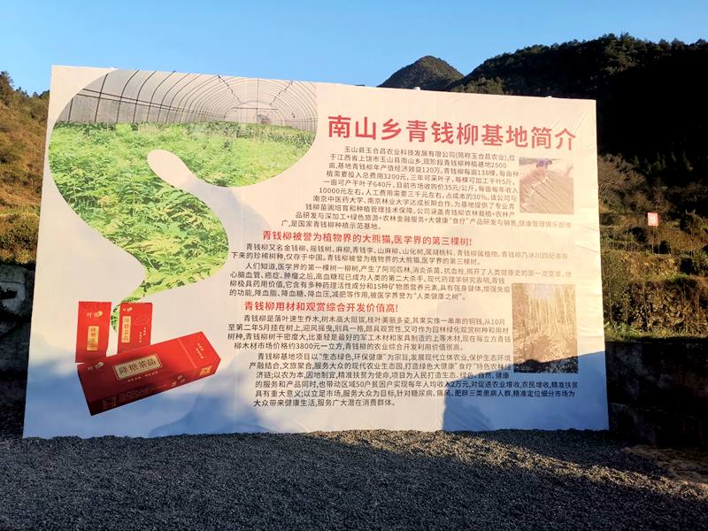 玉山县玉合昌农业科技发展有限公司主营业务为药材和青钱柳种植。青钱柳,别名:摇钱树、麻柳,我国主要分布于江西、湖南等地,有丰富药用、成材、产业衍生价值。近年,种植青钱柳成为国家精准扶贫政策下重点扶持鼓励项目,发展迅速,创造了极大契机及经济、社会效益。青钱柳通常生长在海拔500—2500米的山地湿润的森林中;喜光,幼苗稍耐阴;要求深厚、喜风化岩湿润土质;耐旱,萌芽力强,生长中速。3~5a可郁闭成林。