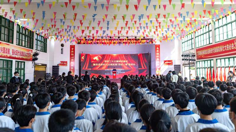 中经网·中经在线讯(张星兴 通讯员 颜伶俐 眭文平)11月28日,党的二十大精神进基层暨衡东县新时代文明实践“四会一课”推进会在衡东县第六中学举行。此次活动通过校园思享会、音乐党史课、大众读书会等“四会一课”的宣讲方式,推动党的二十大精神走进基层,开花结果。