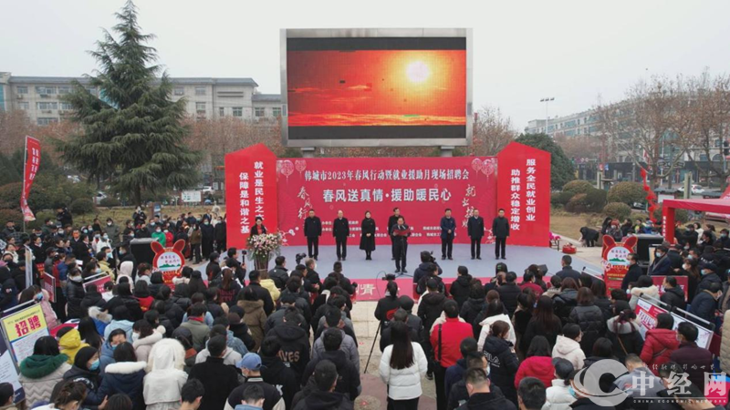 中经网讯2月10日上午10时,由韩城市人民政府主办,市人社局、市退役军人事务局、市乡村振兴局、市总工会、市妇联、市残联、市工商联等八部门联合承办的以“春风送真情·援助暖民心”为主题的韩城市2023年春风行动暨就业援助月现场招聘会,在韩城市太史园广场隆重举行。