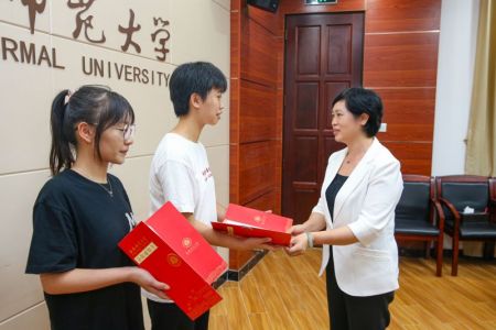 中经网·中经在线海口讯(闫晓亮)海南师范大学2023年首批本科生录取通知书将满载祝福和期冀,陆续寄往全国各地的新晋“小海狮”手中。7月18日下午,海南师范大学校长过建春亲自为录取通知书编号“20230001”和“20230002”的新生送上这份特别的礼物。