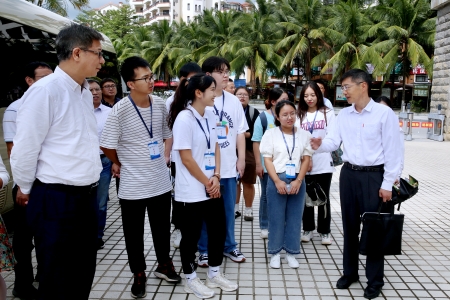陈相松一行还来到海南省农垦实验中学看望顶岗实习学生,听取实习学生的生活、实习情况汇报,为学生送上慰问品。他叮嘱同学们珍惜实习机会,虚心学习请教,以“四有”好老师的标准严格要求自己,认真完成实习工作。