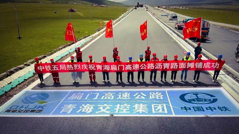 中经网讯 7月19日,由中国中铁五局参建的我国“温度最低”的高速公路——青海扁门高速公路二期沥青路面摊铺成功。