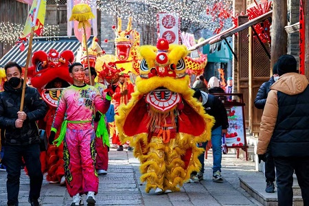 2025年1月29日至2月12日(大年初一至十五),游客服务中心外广场至日月岛广场将会被喜庆的巡游表演承包,舞龙舞狮、街头杂耍、国风演艺、锣鼓表演等好戏轮番开场,精彩日日相聚。巡游结束后,将会在日月岛广场给游客呈现一场民俗国风文艺演出。