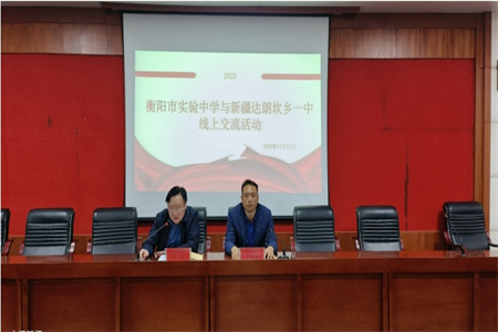 网络研讨会在双方友好和谐的气氛中开始。双方学校介绍了出席会议的领导和教师之后,邓立云书记介绍了衡阳市实验中学的基本情况和学校在教育教学管理、教研教改等方面的做法和取得的成绩,并重点介绍了本校创新教学研究思路,坚持开展以“研讨课、汇报课、比武课、示范课”为主体的课堂教学改革研讨活动和如何利用现代信息技术提高课堂教学效率的经验。他希望通过此次校际线上交流活动的举办,能够促进学校与新疆达浪坎乡一中的友谊发展,促进东西部地区教育的共同提高。