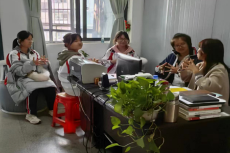 心理健康委员会五位同学满面春风来到了心理健康教育中心,与蒋老师寒暄问好,蒋老师也热情款待大家。会议在轻松愉悦的氛围中展开。
