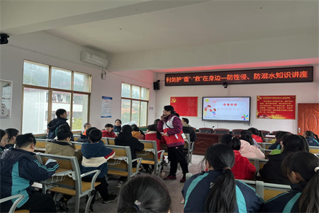 讲座现场,红十字会工作人员黄霞以图片、防性侵安全知识问答、情景模拟等形式,详细讲解身体的隐私部位、性侵害的含义和类型、性侵害的危害,性侵害的认识误区以及性侵害的正确防范方法。引导学生明确自己的身体界限,了解哪些接触是合适的,哪些是不合适的。通过真实案例,让学生明白预防性侵害的重要性,鼓励学生对性侵害勇敢说“不”。在防溺水环节中,通过安全警示片,黄霞老师提醒学生远离危险水域,强调要见义智为而非见义勇为,并现场教授学生如何在岸上为溺水者进行心肺复苏。