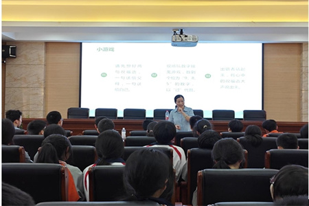 讲座以“心理健康 你我同行”为主题,向同学们介绍了心理健康教育的相关知识。案例以视频动画为载体,生动展现在学生面前。讲座现场师生互动频繁,氛围活跃。讲座最后,轻舟老师鼓励同学们要做一个积极向上的学生,在自己遇到困难时,要积极向老师、专业心理咨询机构寻求帮助。