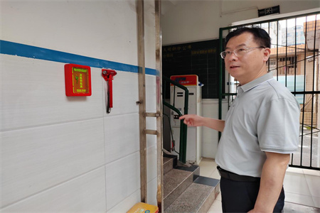 进校督查第一站,曾督学直奔“奋进楼”,查看学生宿舍的消防安全设施和“生命通道”开启情况,曾督学走进学生宿舍楼,看到每层楼有两个安全出口,每道门边装有安全门钥匙盒和安全锤,楼道内消防器材配备齐全,寝室内安全制度上墙,宿管人员在进行内务评比,他连连说:三中学生的“生命通道”开启方便,宿管老师敬业,三中的安全“紧㧜咒”念得好。