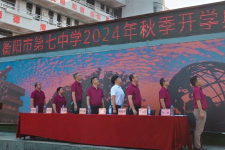中经总网.中经在线湖南衡阳讯(罗召俊 通讯员 周佩文)2024年9月2日,衡阳市第七中学全体师生齐聚校园,举行隆重的开学典礼,开启新的征程。典礼由校长汤克主持。