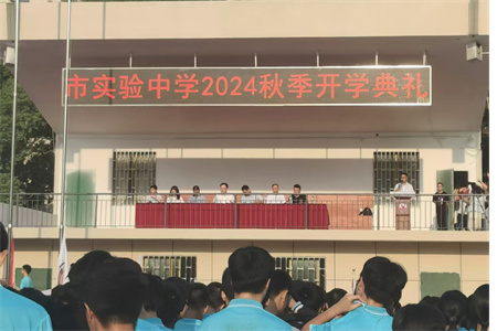 中经总网·中经在线湖南衡阳讯(张星兴 通讯员:李颖 杨圣妮 杜炜)9月2日早晨,衡阳市实验中学焕然一新的校园内充满了生机与活力,学校2400多位师生怀着对新学期的憧憬与期待,齐聚操场,隆重举行秋季开学典礼。典礼由学校纪检员唐林主持。