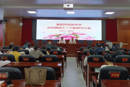 中经总网·中经在线湖南衡阳讯(张星兴 通讯员:杨圣妮)金风送爽,桃李飘香。9月10日,衡阳市实验中学笑语盈盈,一场温馨而庄重的庆祝第四十一个教师节大会在会议室盛大举行。全体教职工精神抖擞地齐聚一堂,共同迎接这一属于教育工作者的荣耀时刻。大会由校长罗兵兵主持。