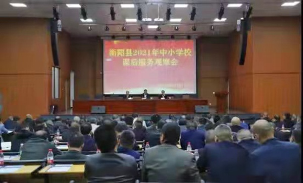 10月15日,衡阳县2021年中小学校课后服务工作现场观摩会在英南学校召开。县教育局党委书记、局长肖高登出席会议并讲话,副局长黄前作中心发言,县教育局相关领导,县教育局直属学校校长,各乡镇(园区)学区主任、基教专干,各初中学校、中心小学、完小校长参加会议,县教育局党委副书记、副局长蒋自强主持会议。