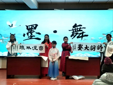 激烈的比拼过后,学校还组织了一场具有传统文化韵味的书法舞蹈秀表演——“墨•舞”。