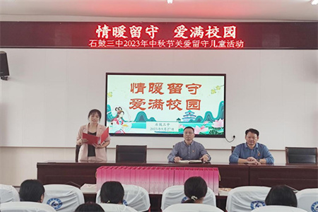 每逢佳节倍思亲,作为未成年的留守学生,这种感受尤其强烈。中秋佳节即将来临,为了让留守学生体会到节日的温暖,弥补父母不在身边的亲情,9月27日,石鼓区第三中学开展了“情暖留守,爱满校园”为主题的关爱留守学生活动,学校全体行政人员、教师代表和24名留守儿童参加。