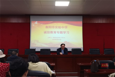衡阳市实验中学一贯重视开展诚信教育系列活动,旨在通过诚信教育引导师生树立诚信观念,自觉加强诚信建设,养成诚信待人、诚信处事、诚信学习、诚信立身的良好习惯。