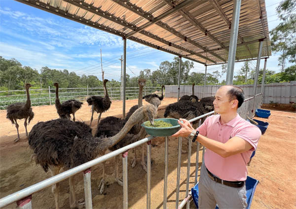 在当地党委政府的支持下,肖建平在廉江注册了公司,采用“公司+基地+养殖户”的方式,给养殖户提供鸵鸟苗,免费提供技术,并保价回收鸵鸟和鸵鸟蛋,给广大村民吃了“定心丸”。据统计,从基地领养鸵鸟的有15户农户,鸵鸟养殖规模总共500只,年产值达到200多万元。目前,鸵鸟养殖已成为当地村民致富的特色产业,推动了乡村振兴。