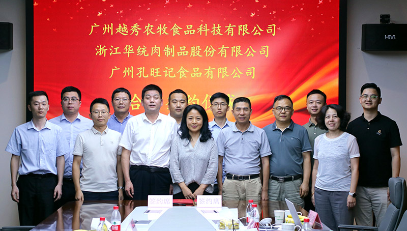 中经总网-中经在线浙江义乌讯(卢国良 何见超)广州越秀农牧食品科技有限公司及其子公司孔旺记食品有限公司近日派代表团队前往华统股份,正式签署了长期战略合作协议。会议上,越秀集团首席财务官陈静、越秀农牧食品董事长程九洲,以及华统股份董事长兼总经理朱俭军等重要人物齐聚一堂,见证了这一重要合作的达成。