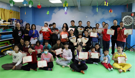 东莞市飞镖协会国家级教练韩炳辉会长一直关注并全力支持本次飞镖活动项目的开展,他在致词中说:“心智障碍群体长期面临诸多困难和挑战,飞镖训练是针对这个群体的新型训练形式,飞镖简单易学,非常适合心智障碍群体参加。通过5个多月的专业飞镖训练,帮助他们提升了专注力、社交、协调、协作、竞争、情绪改善、运动技巧、自信心、个人成长、情感状态等各方面的能力”。接着,韩会长还为这次参与飞镖训练的项目受众颁发了奖励证书,以资鼓励。