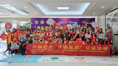 中经总网·中经在线广东东莞讯 手语不仅作为失聪人员之间主要的沟通交流工具,也是他们与健听人沟通思想、传递信息的桥梁。为进一步推广国家通用手语,提高手语应用普及率,提升社会大众对听障人群体的认知。1月21日上午,东莞市聋人协会联合东莞市志愿者拓展服务总队启语分队、东莞巴士有限公司、广东狮子会广明服务队、东莞市六度公益服务中心、东莞市大众社会工作服务中心和东莞慈瑞医院,开展“共融巴士,手语巡游”公益活动。
