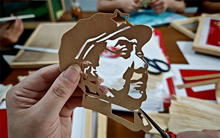 中经总网·中经在线浙江温州讯 为庆祝党的103周年华诞, 近日温州市平阳县乐创社会服务中心党支部策划了一场独具匠心的笋壳画制作活动,活动的宗旨是呈上对老党员的敬意与祝福。在乐创残疾人之家非遗工作室,残障学员们倾注敬意与祝福,由吴捷老师指导创作出一幅幅笋壳画,赠送给建国前老党员和入党50周年老党员。以此庆祝党的生日,彰显出他们通过学习和创作非物质文化遗产,实现自我价值、融入社会的能力与成绩