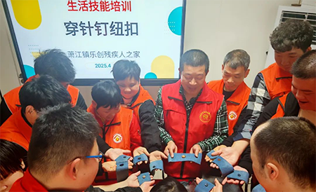 中经总网·中经在线浙江温州讯 在生活的琐碎日常里,一颗小小的纽扣,也能成为传递温暖与希望的载体。为助力残障人士掌握实用生活技能、增强自理能力,4月10日,温州市平阳县萧江镇乐创残疾人之家开展了一场别开生面的“穿针钉纽扣”生活技能培训活动 。此次活动由荣获“平阳好人”称号的志愿者鲍必做担任指导老师,凭借他十余年深厚的服装行业经验,为学员们带来了一堂既实用又充满温情的课程。