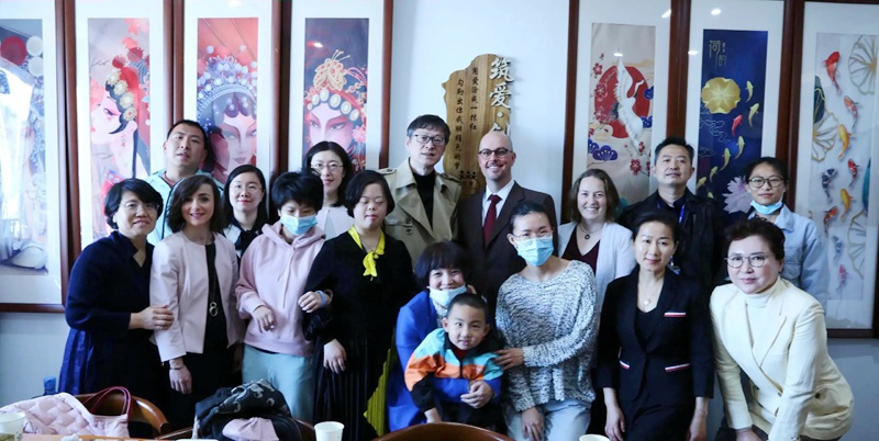 加拿大驻华大使馆一行人与筑爱特殊创业中心工作人员合影留念